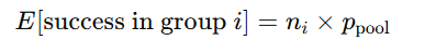 帰無仮説 H₀:prain=pclear のもとで共通の確率を「プール比率」として推定し、各群の期待成功率は次の式で表せます。