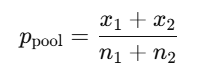 帰無仮説 H₀:𝑝1=𝑝2のもとで、2群に共通と仮定した比率の最尤推定値