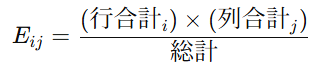 行合計×列合計÷総計 で各セルの期待度数を出します。