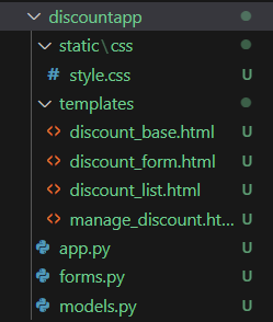 ここでは、割引機能をひとつのアプリケーションで作成します。このアプリケーションのディレクトリ名は「discountapp」とします。以下は必要なファイルです。